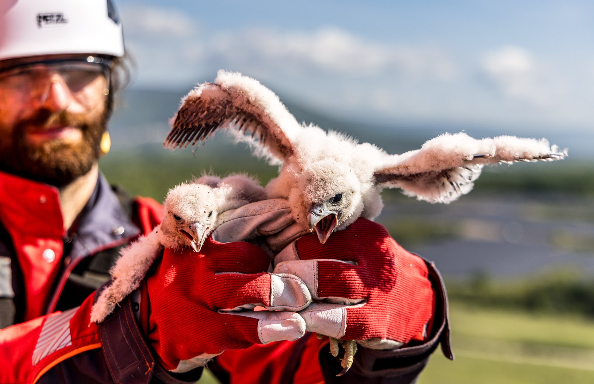 Sokoli stěhovaví využívají hnízdní budky na komínech výrobních areálů chemičky od roku 2011, kdy začala spolupráce se sdružením Alka Wildlife. "Letos jsme například v litvínovské rafinérii kroužkovali velmi mladé sokoly. Byli na světě 12 až 14 dnů a na rozdíl od minulých let nekladli při kroužkování žádný odpor. Jediná nevýhoda časného kroužkování je, že nejsme schopni s jistotou rozeznat pohlaví mláďat. Sokoli již vyletěli z hnízda a začínají objevovat svět a získávat nové zkušenosti," uvedl ornitolog Václav Beran