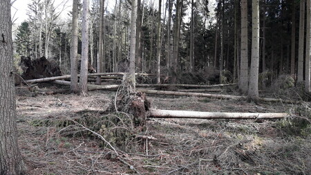 Silný vítr poškodil asi milion stromů ve státních lesích, nejhůře dopadly severní Čechy