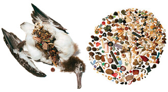 Při dlouhodobém působení slané vody a slunce se plasty v mořích rozpadnou na drobné úlomky, které si pak mořští živočichové pletou s potravou. Tyto plastové částečky mohou obsahovat jedovaté látky jako je DDT, polychlorované bifenyly či rtuť, které se pak přes ryby a jiné mořské živočichy dostanou v potravním řetězci až k lidem, přímo na jídelní stůl.