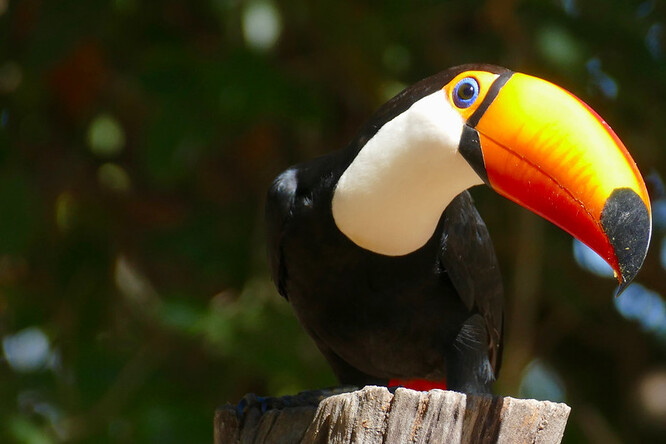 Tukan obrovský je největší z více než 40 druhů tukanovitých ptáků. Obývá tropické lesy Jižní Ameriky. Charakteristickým znakem je velký, přesto lehký zobák, který měří až 20 centimetrů a tvoří téměř polovinu délky těla. Slouží nejen ke sběru potravy, ale také k termoregulaci nebo komunikaci s ostatními jedinci. Nejvíce času tráví v korunách stromů, kde se pohybuje zejména mohutnými přískoky. Bez pomoci křídel překoná i více než metrovou vzdálenost.