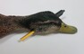 Odchyt samce kachny divoké se zapíchnutou šipkou z pistolové kuše v krku a lebce